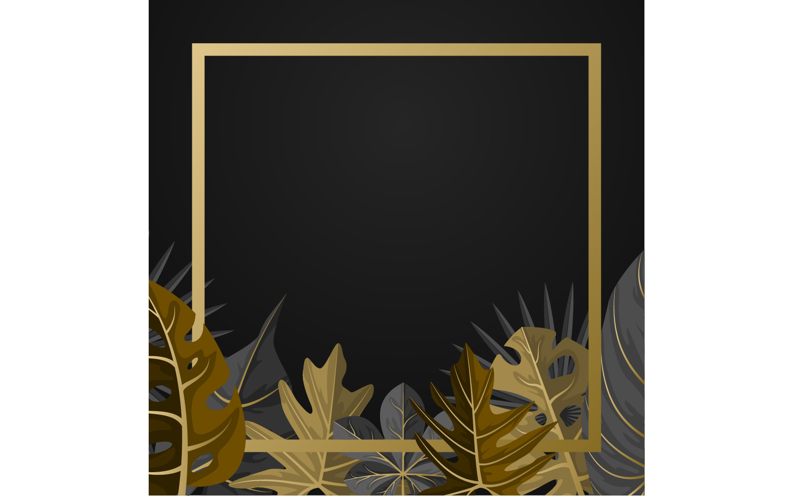Download Иллюстрация "Square Golden Frame - Illustration" / Square Golden Frame - Illustration - Иллюстрация на тему графика square,golden,tropical,plant,summer,leaf,border,frame,background,vector,illustration,trendy,wedding,party,floral,design,nature,botanical,leaves,invitation