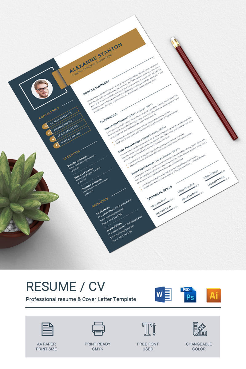 Download Резюме "Stanton Resume Template" / Stanton Resume Template - Адаптивный Резюме на тему графика a4 clean resume cv doc elegant template indesign infographic modern professional creative design minimal pages portfolio word us letter