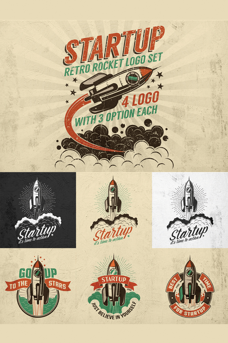 Download Иллюстрация "Startup Rocket Retro Emblem - Illustration" / Startup Rocket Retro Emblem - Illustration - Иллюстрация на тему графика emblem badge label illustration banner professional poster stamp ribbon symbol