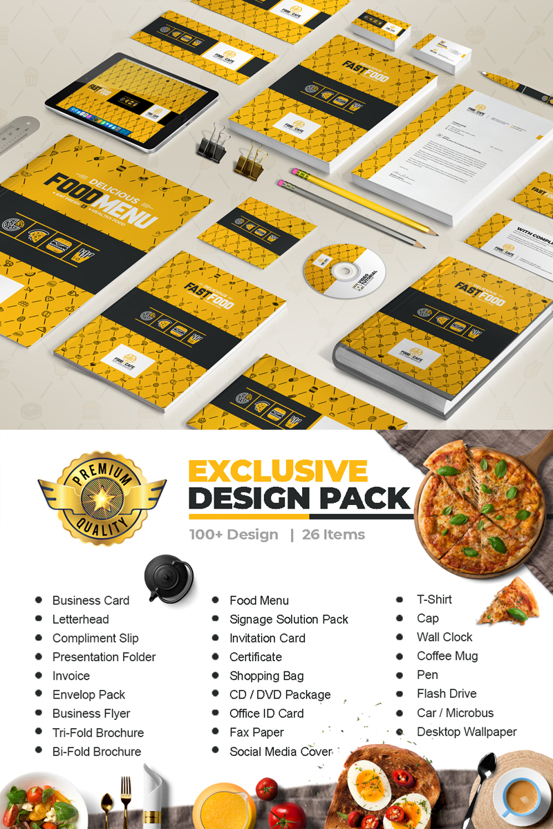Download Бандл элементов корпоративной айдентики продуктовой компании / Stationery Mega Branding Identity Design For Fast Food Agency or Company - Фирменный стиль на тему графика fast food branding company restaurant identity brand bundle stationery big pack package full kit template corporate creative photoshop business pack