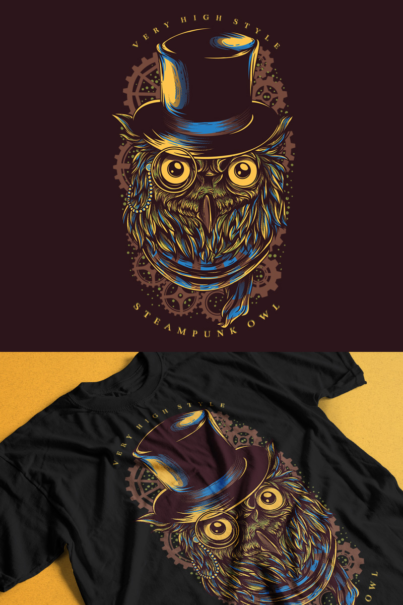 Download T-shirt Design "Steampunk Owl - T-shirt Design" / Steampunk Owl - T-shirt Design - T-shirt Design на тему графика illustration t-shirt design artwork apparel merch cartoon events fashion graphics poster mascot festival owl steampunk robot machine music stuff sell