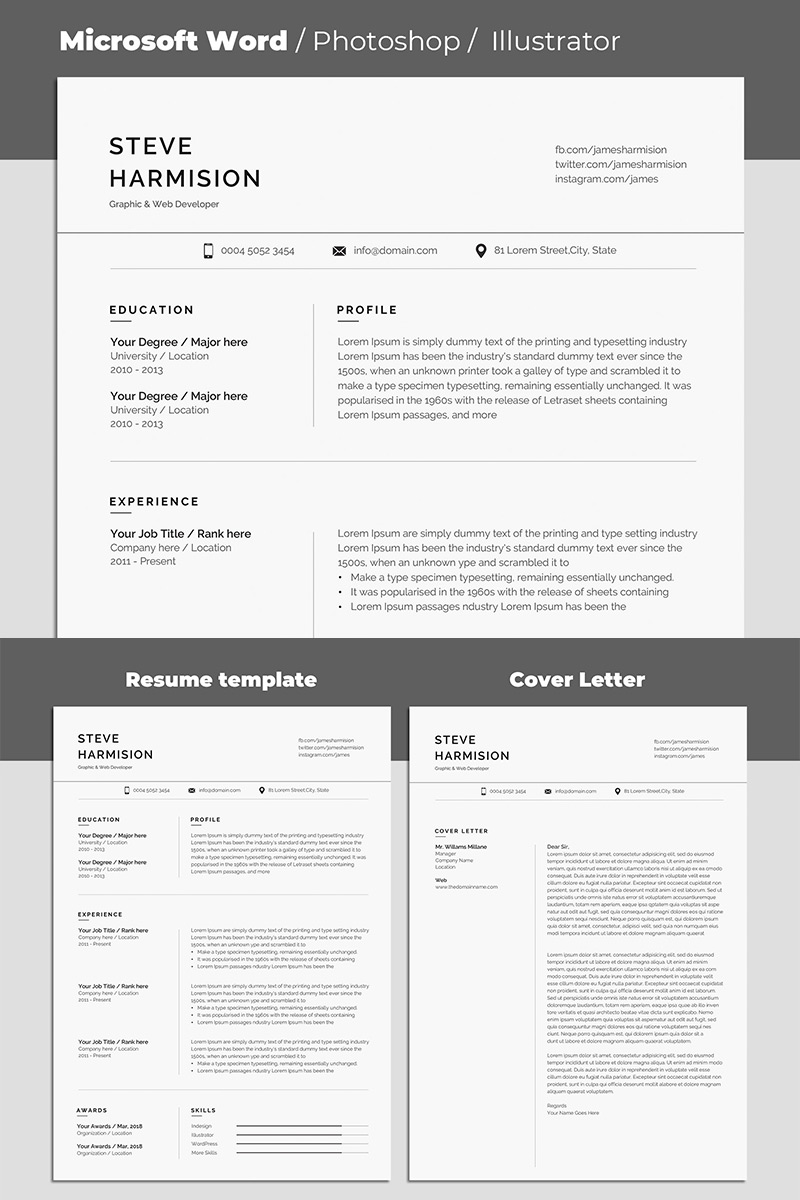 Download Резюме "Steve Harmision Resume Template" / Steve Harmision Resume Template - Резюме на тему графика a4 clean cv design elegant resume female infographic letter minimalist modern portfolio professional indesign minimal pages word template