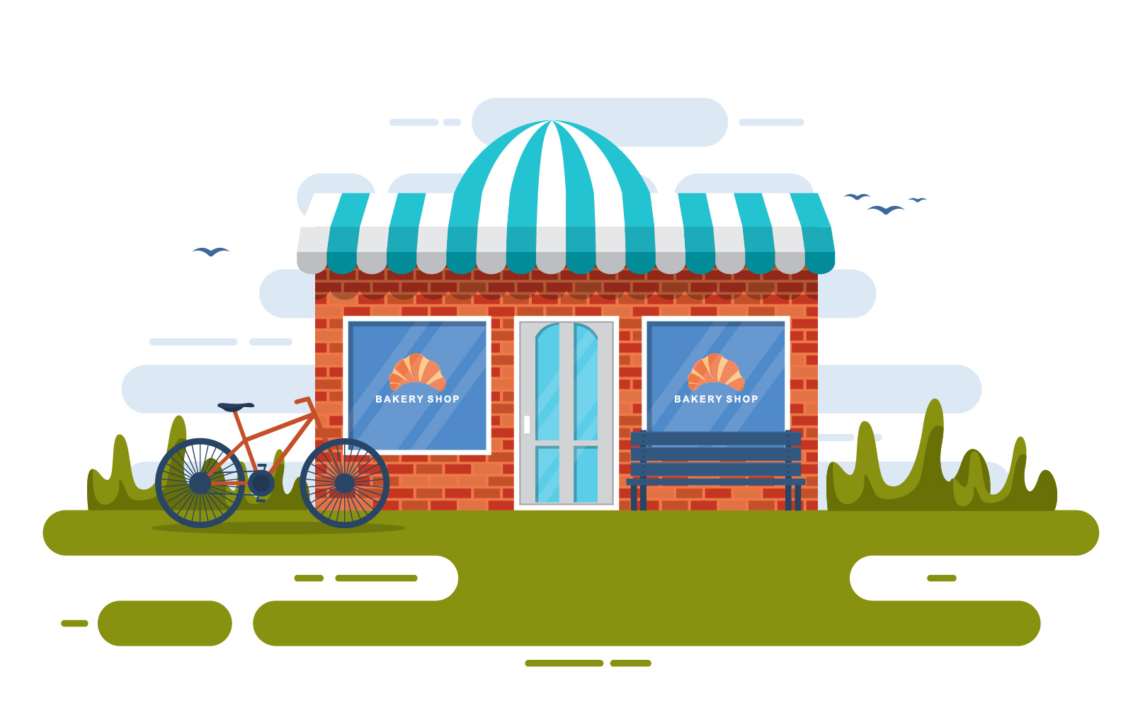 Download Иллюстрация "Store Front Bakery - Illustration" / Store Front Bakery - Illustration - Иллюстрация на тему графика showcase,bakery,shop,food,store,front,facade,cartoon,illustration,vector,business,exterior,awning,supermarket,architecture,bread,sweet,cafe,cake,dessert