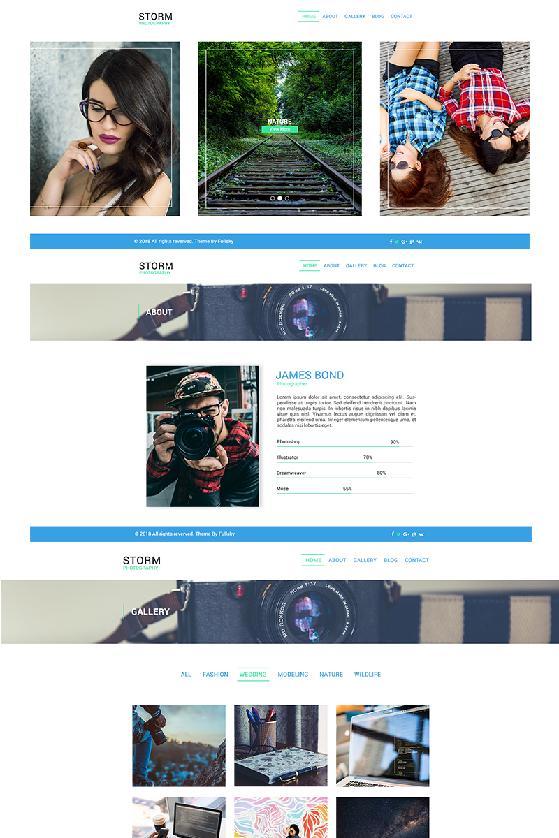 Download PSD шаблон "Storm Photography PSD Template" / Storm Photography PSD Template - Адаптивный PSD шаблон на тему фотогалерея photography photographer portfolio gallery google map contact form slide cool
