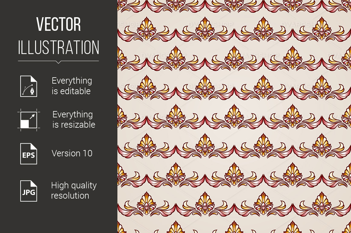 Download Vector "Stripy Floral Seamless Pattern - Vector Image" / Stripy Floral Seamless Pattern - Vector Image - Vector на тему графика pattern,floral,seamless,stripy,eps,brown,beige,classic,ornamental,elegance,curved,vector,royal,fashion,textile,revival,classical,flourish,orange,element