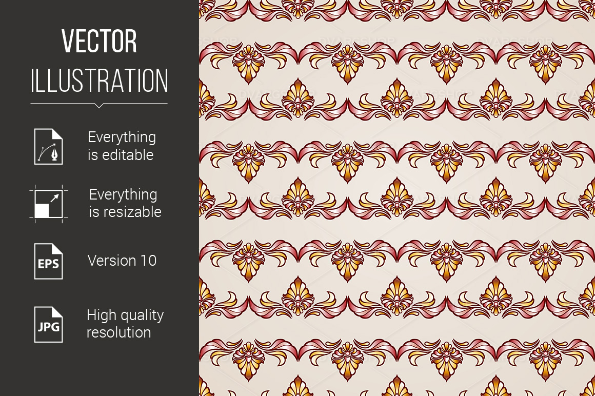 Download Vector "Stripy Floral Seamless Pattern - Vector Image" / Stripy Floral Seamless Pattern - Vector Image - Vector на тему графика pattern,floral,seamless,stripy,eps,brown,beige,textile,luxury,vignette,style,classic,vector,texture,wallpaper,orange,art,design,old,victorian