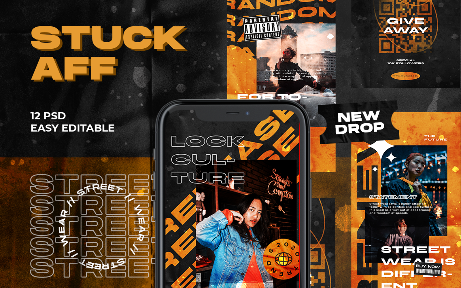 Download Шаблон для соцсетей "STUCK AFF Instagram PSD Social Media Template" / STUCK AFF Instagram PSD Social Media Template - Шаблон для соцсетей на тему графика art,banner,branding,brutalist,dark,design graphic,dope,facebook,fashion,green,illustration,instagram,instagram post,instagram poster,instagram posts,instagram stories,instagram story,instagra