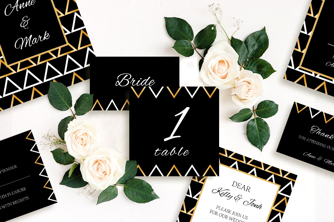 Download Фирменный стиль "Stylish geometry wedding collection - Corporate Identity Template" / Stylish geometry wedding collection - Corporate Identity Template - Фирменный стиль на тему графика wedding,invitation,invite,card,collection,gold,black,premium,elegant,rsvp,geometry,printable,customizable,bingo,ceremony,vector,template,design,stylish,psd
