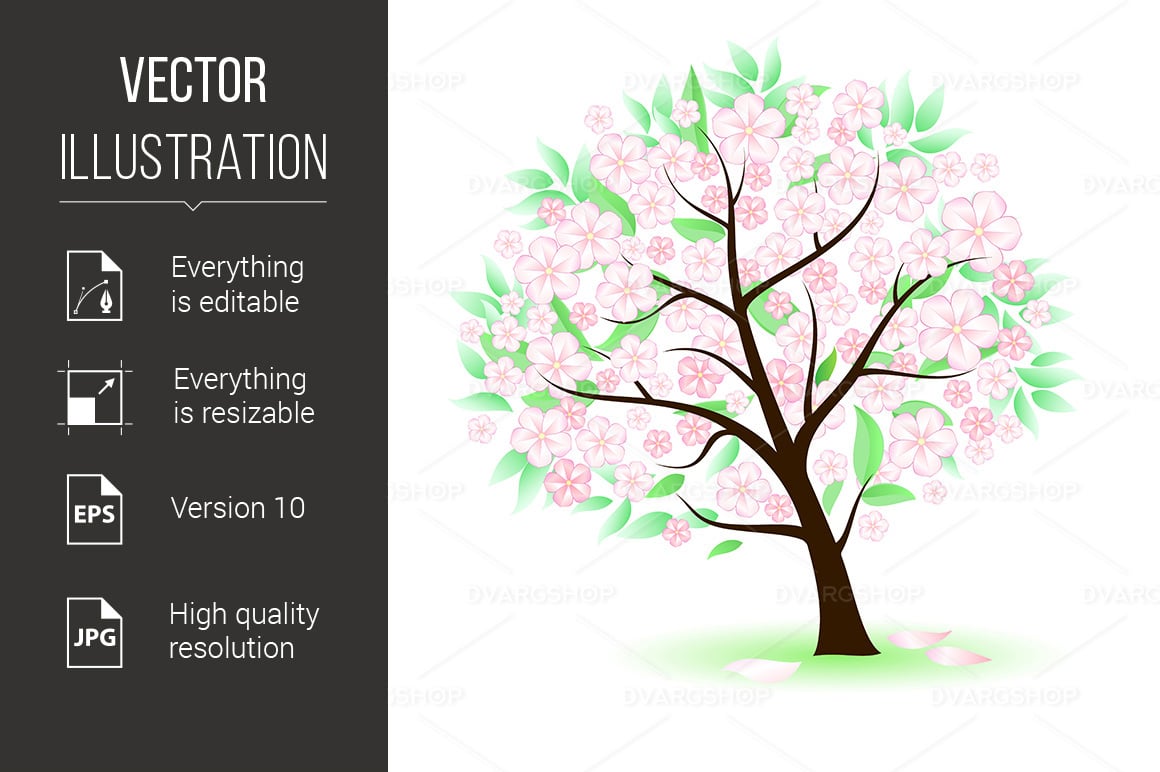 Download Vector "Stylized Tree with Leafs and Flowers - Vector Image" / Stylized Tree with Leafs and Flowers - Vector Image - Vector на тему графика tree,stylized,background,design,white,spring,illustration,green,season,red,isolated,decoration,abstract,environment,wallpaper,growth,brown,park,image,decorative