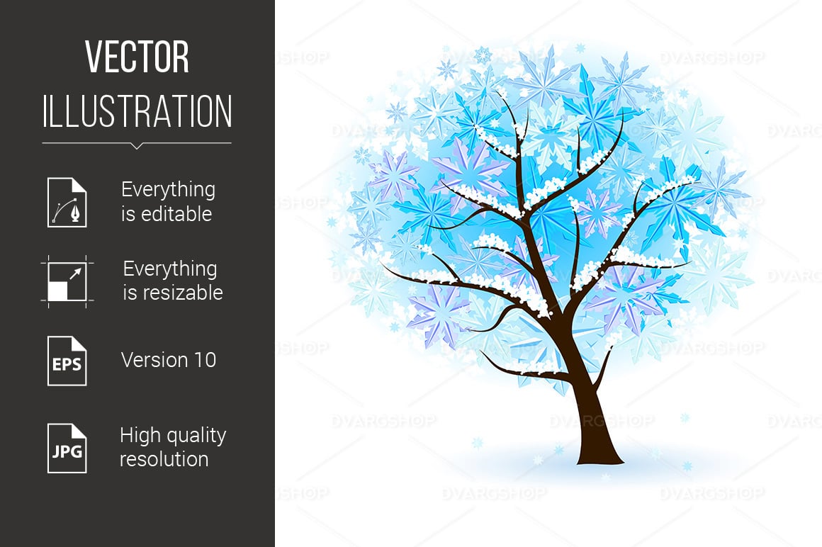 Download Vector "Stylized Winter Fruit Tree - Vector Image" / Stylized Winter Fruit Tree - Vector Image - Vector на тему графика winter,tree,fruit,stylized,illustration,white,background,hoarfrost,vintage,branches,decorative,rowanberry,retro,snowed,icy,plants,cherry,sky,green