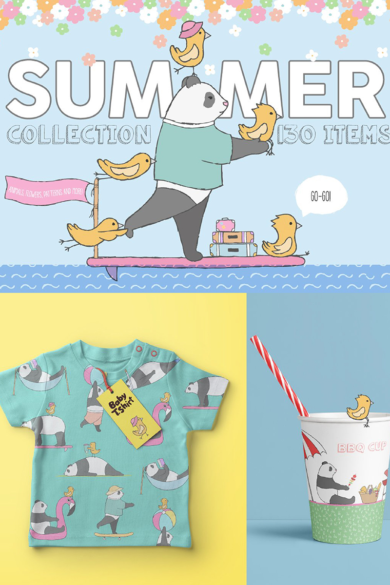 Download Иллюстрация "Summer Collection - Illustration" / Summer Collection - Illustration - Иллюстрация на тему графика summer panda birds bird sticker kids baby album frames flower floral patterns elements logo logos book cover magazine print poster