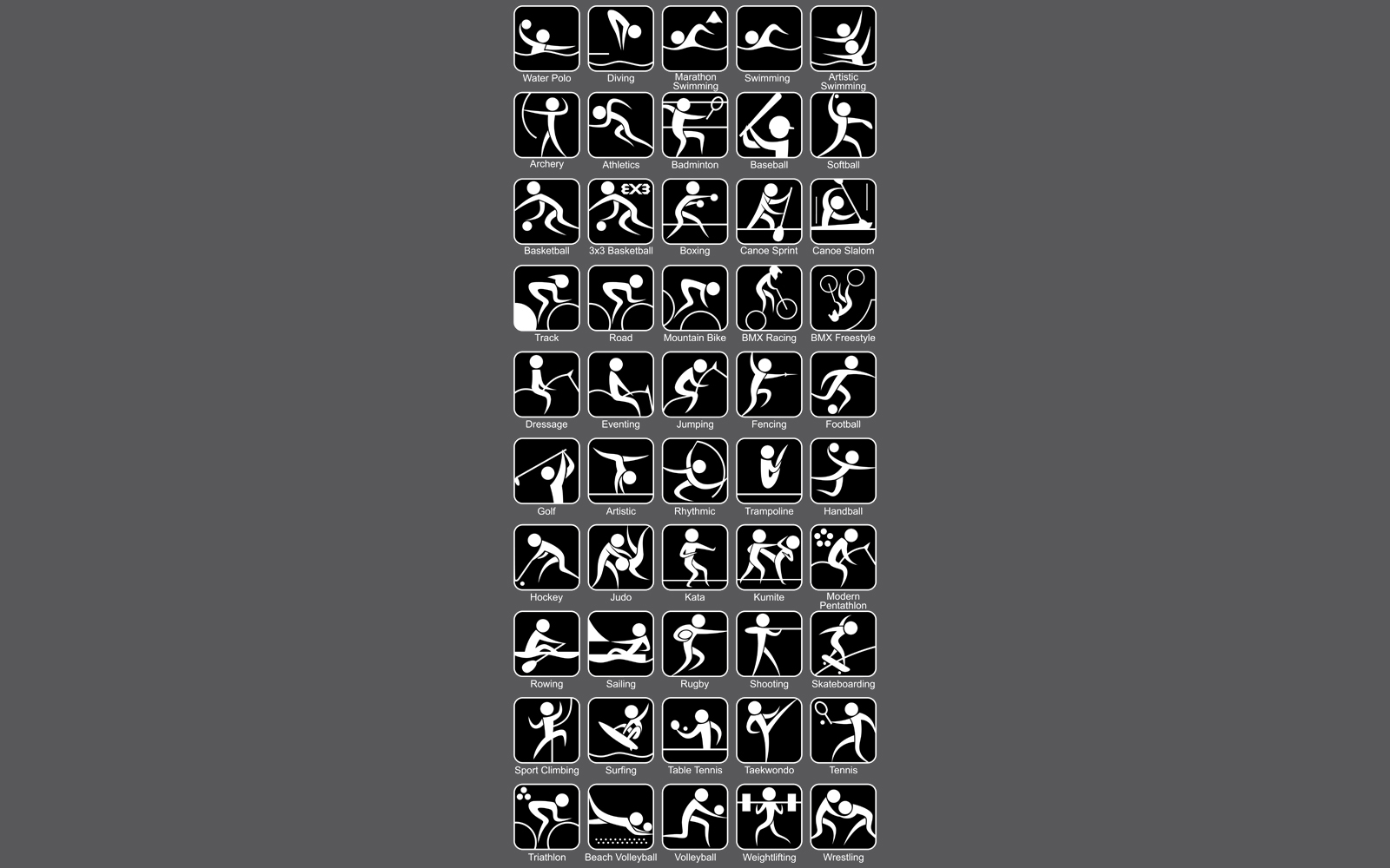 Download Иллюстрация "Summer Sports Symbols - Illustration" / Summer Sports Symbols - Illustration - Иллюстрация на тему графика olympic,olympiad,tokyo,2020,games,sports,summer,symbol,sign,icon,set,aquatics,swimming,diving,water polo,artistic swimming,marathon swimming,archery,athletics,badminton