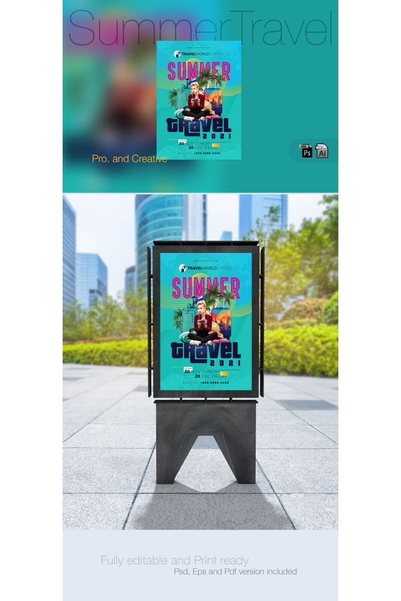 Download Фирменный стиль "Summer Travel / Event Poster - Corporate Identity Template" / Summer Travel / Event Poster - Corporate Identity Template - Фирменный стиль на тему графика design template summer travel event party poster winter flyer turquoise paste green creative layout hotel holiday trip