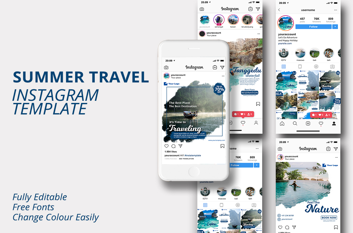 Download Шаблон для соцсетей "Summer Travel Instagram Template for Social Media" / Summer Travel Instagram Template for Social Media - Шаблон для соцсетей на тему графика template,business,modern,graphic,social,frame,media,concept,mobile,web,trendy,illustration,photo,phone,instagram,background,like,story,vector,communication
