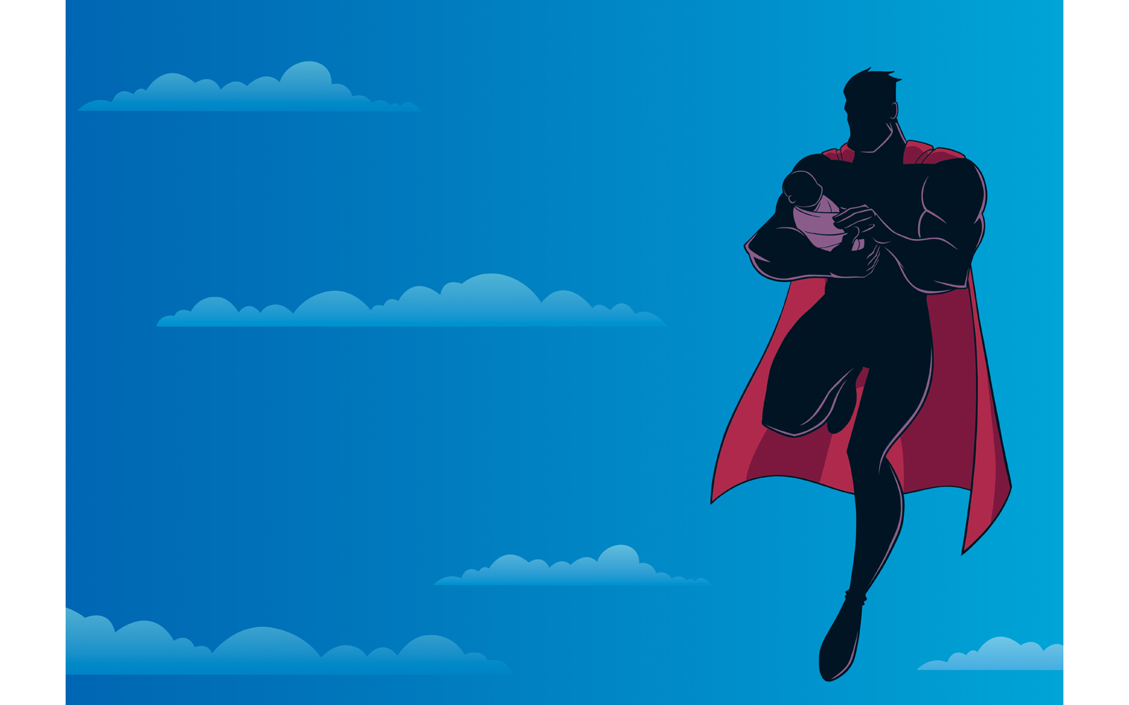 Download Иллюстрация "Super Dad with Baby Sky Silhouette - Illustration" / Super Dad with Baby Sky Silhouette - Illustration - Иллюстрация на тему графика man,hero,cape,super,father,baby,superhero,dad,daddy,silhouette,cartoon,holding,care,son,daughter,boy,girl,child,newborn,safe
