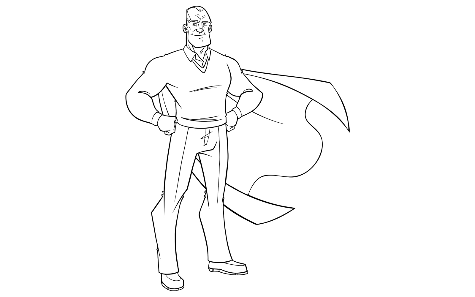 Download Иллюстрация "Super Grandpa Line Art - Illustration" / Super Grandpa Line Art - Illustration - Иллюстрация на тему графика man,hero,cape,superhero,super,grandpa,grandfather,cartoon,coloring,book,line art,character,comic,comic strip,comic book,grandparent,posing,proud,retirement,retired