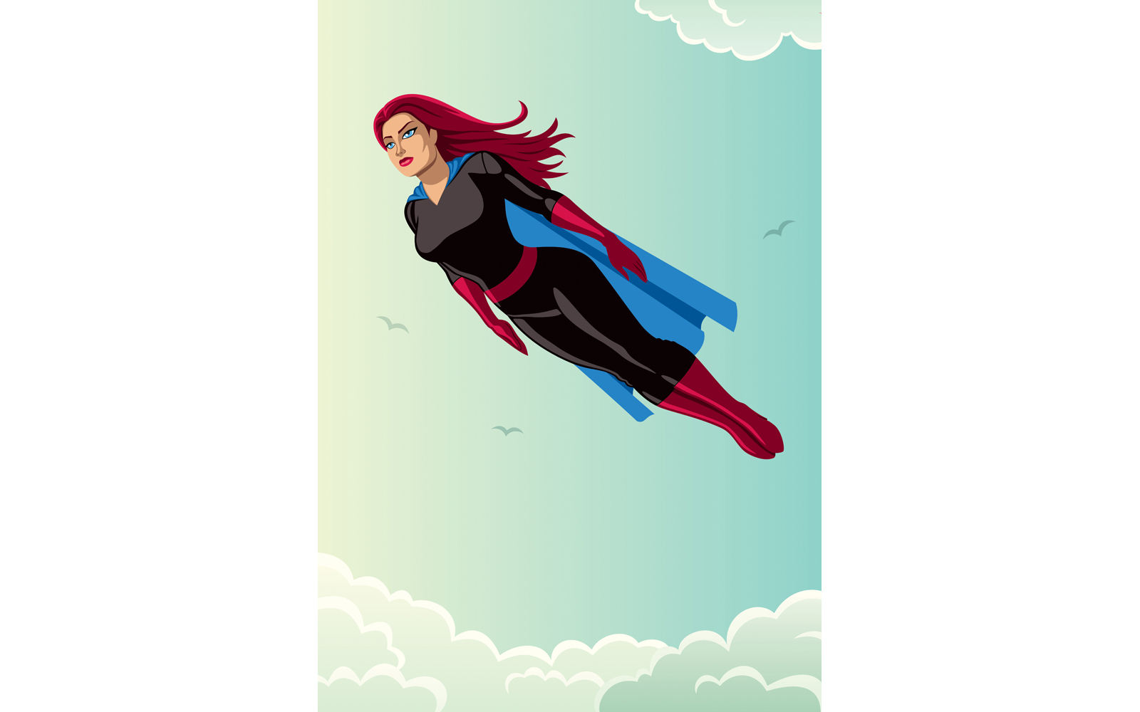 Download Иллюстрация "Super Heroine Flying Sky - Illustration" / Super Heroine Flying Sky - Illustration - Иллюстрация на тему графика superhero,female,superheroine,super,hero,heroine,woman,girl,power,superwoman,flying,flight,strength,body,sexy,hot,costume,cape,cloak,mantle