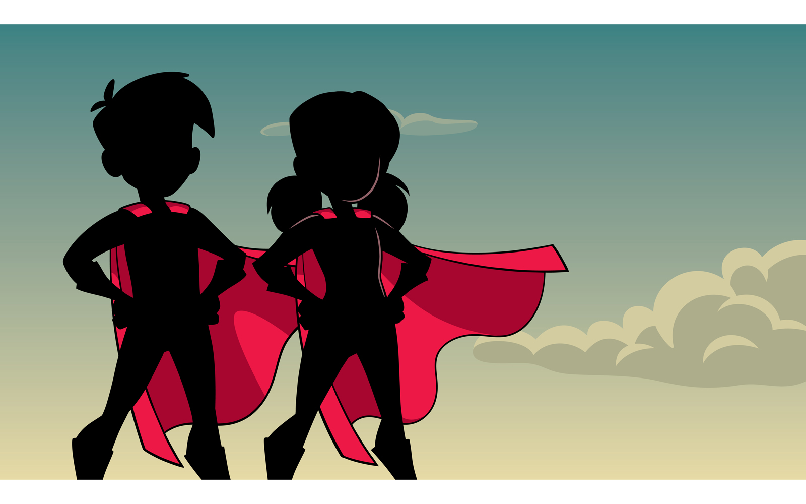 Download Иллюстрация "Super Kids Sky Silhouette - Illustration" / Super Kids Sky Silhouette - Illustration - Иллюстрация на тему графика cape,hero,heroine,super,boy,girl,kid,superhero,superheroine,child,friend,boyfriend,girlfriend,couple,brother,sister,cousin,sibling,silhouette,power