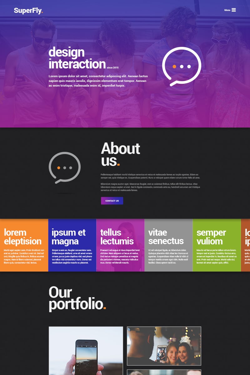 Download PSD шаблон "SuperFly - Creative PSD Template" / SuperFly - Creative PSD Template - PSD шаблон на тему веб-дизайн modern trendy one page portfolio freelance designer clean cool purple specs