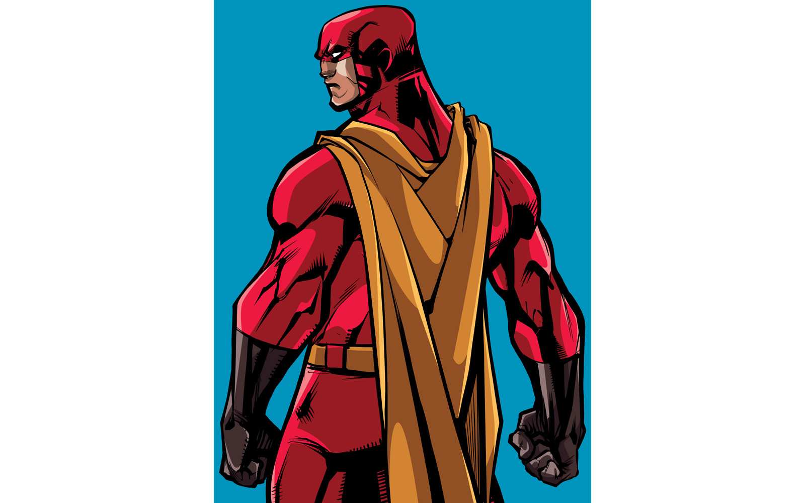 Download Иллюстрация "Superhero Back Battle Mode - Illustration" / Superhero Back Battle Mode - Illustration - Иллюстрация на тему графика man,hero,cape,superhero,super,character,ready,courage,action,power,powerful,strong,strength,back,rear view,muscular,muscles,determined,determination,vigilance