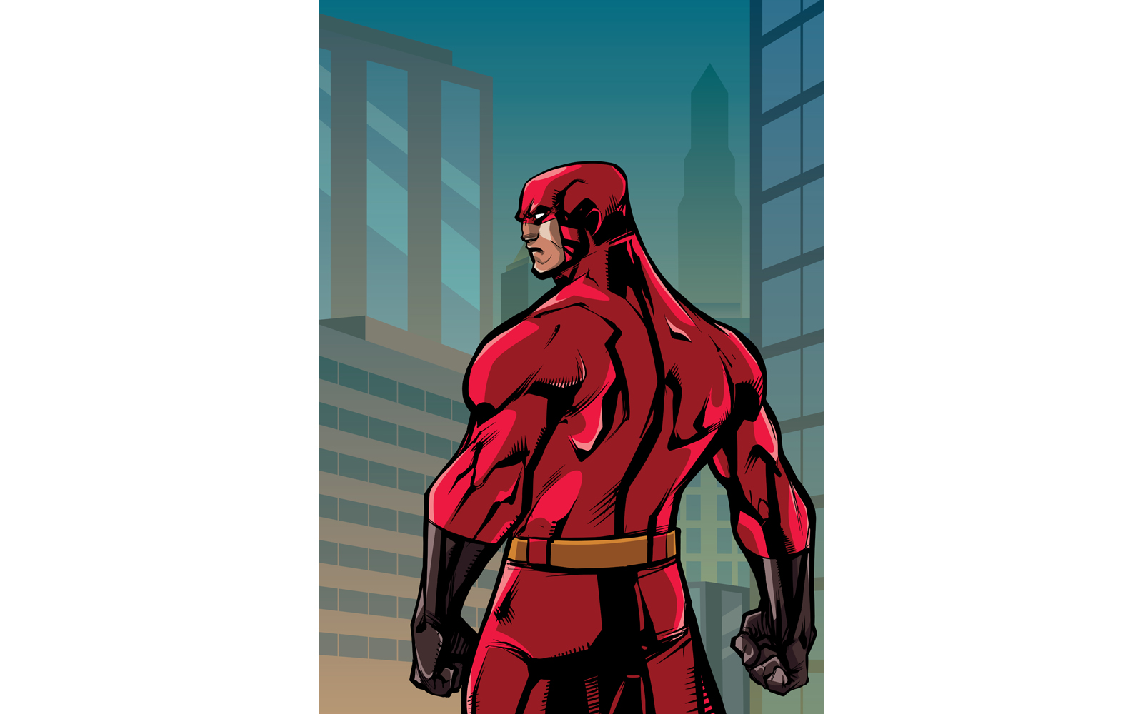 Download Иллюстрация "Superhero Back No Cape City - Illustration" / Superhero Back No Cape City - Illustration - Иллюстрация на тему графика man,hero,cape,superhero,super,character,ready,courage,action,power,powerful,strong,strength,back,city,cityscape,landscape,art deco,night,dark
