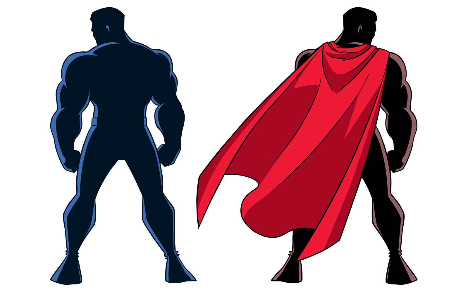 Download Иллюстрация "Superhero Back Silhouette - Illustration" / Superhero Back Silhouette - Illustration - Иллюстрация на тему графика man,hero,cape,superhero,super,cartoon,character,silhouette,back,rear view,ready,courage,action,power,powerful,strong,strength,muscular,muscles,determined