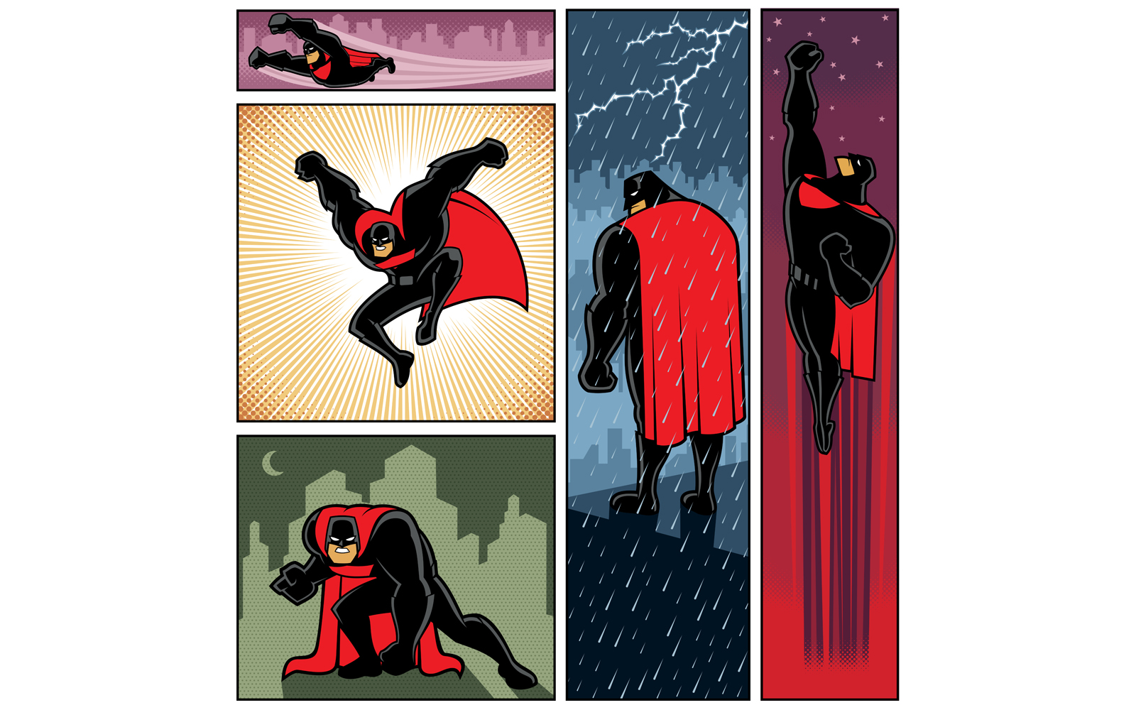 Download Иллюстрация "Superhero Banners 6 - Illustration" / Superhero Banners 6 - Illustration - Иллюстрация на тему графика superhero,super,hero,man,superman,banner,background,copyspace,copy,space,power,comic,book,cartoon,style,rays,light,sun,flying,standing