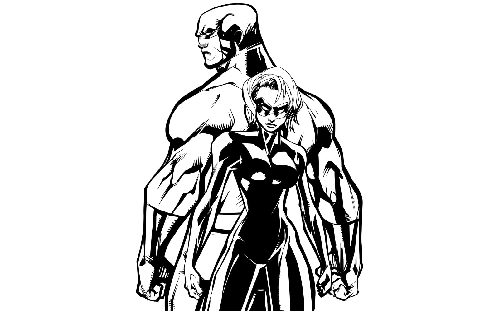 Download Иллюстрация "Superhero Couple Back to Back No Capes Line Art - Illustration" / Superhero Couple Back to Back No Capes Line Art - Illustration - Иллюстрация на тему графика man,woman,hero,superhero,super,couple,family,heroine,superheroine,love,together,confrontation,fight,battle,power,powerful,strong,muscular,fitness,bodybuilding