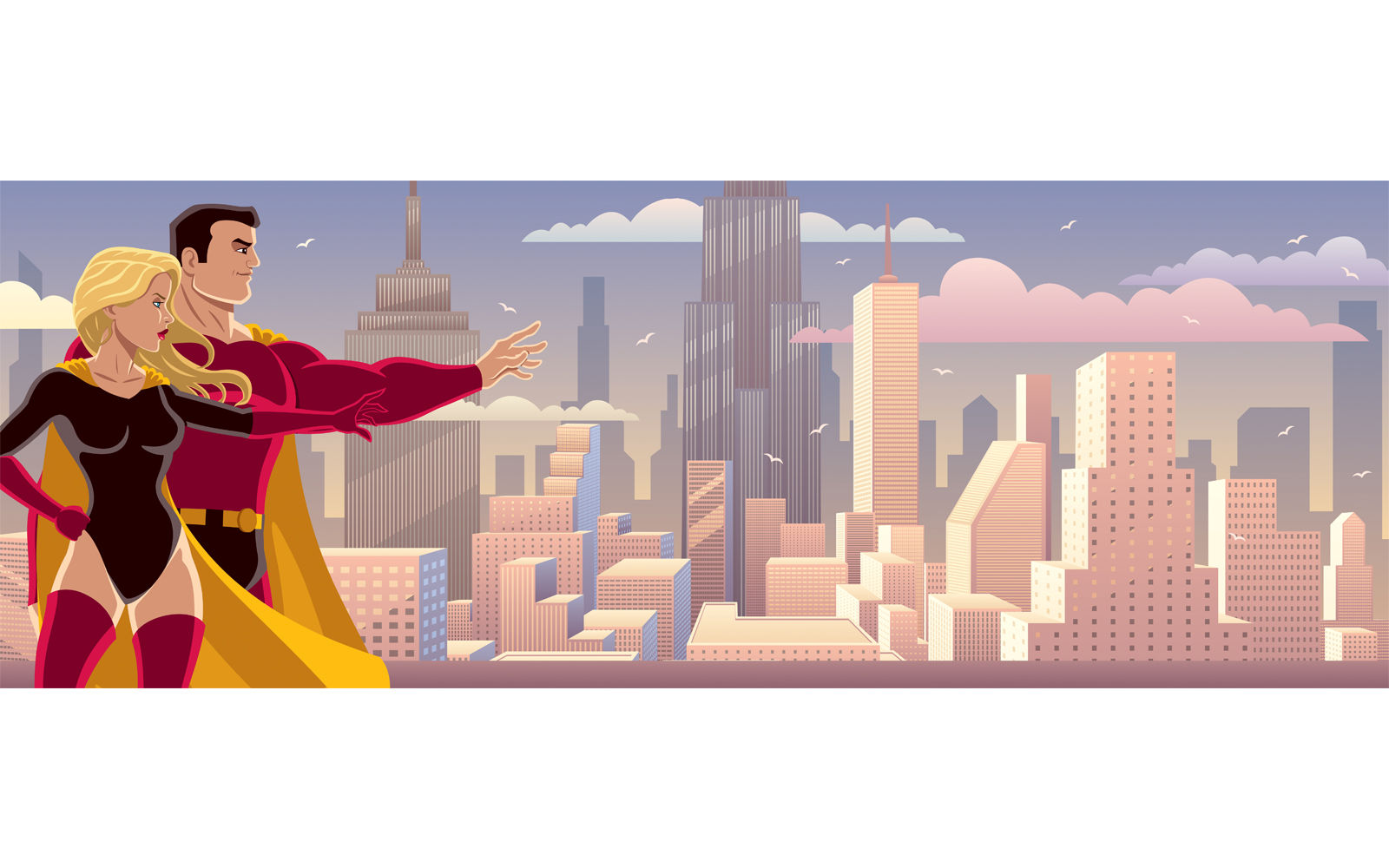 Download Иллюстрация "Superhero Couple Banner - Illustration" / Superhero Couple Banner - Illustration - Иллюстрация на тему графика superhero,superheroes,superman,superheroine,super,hero,heroes,man,male,female,heroine,woman,girl,superwoman,couple,family,presenting,showing,pointing,presentation