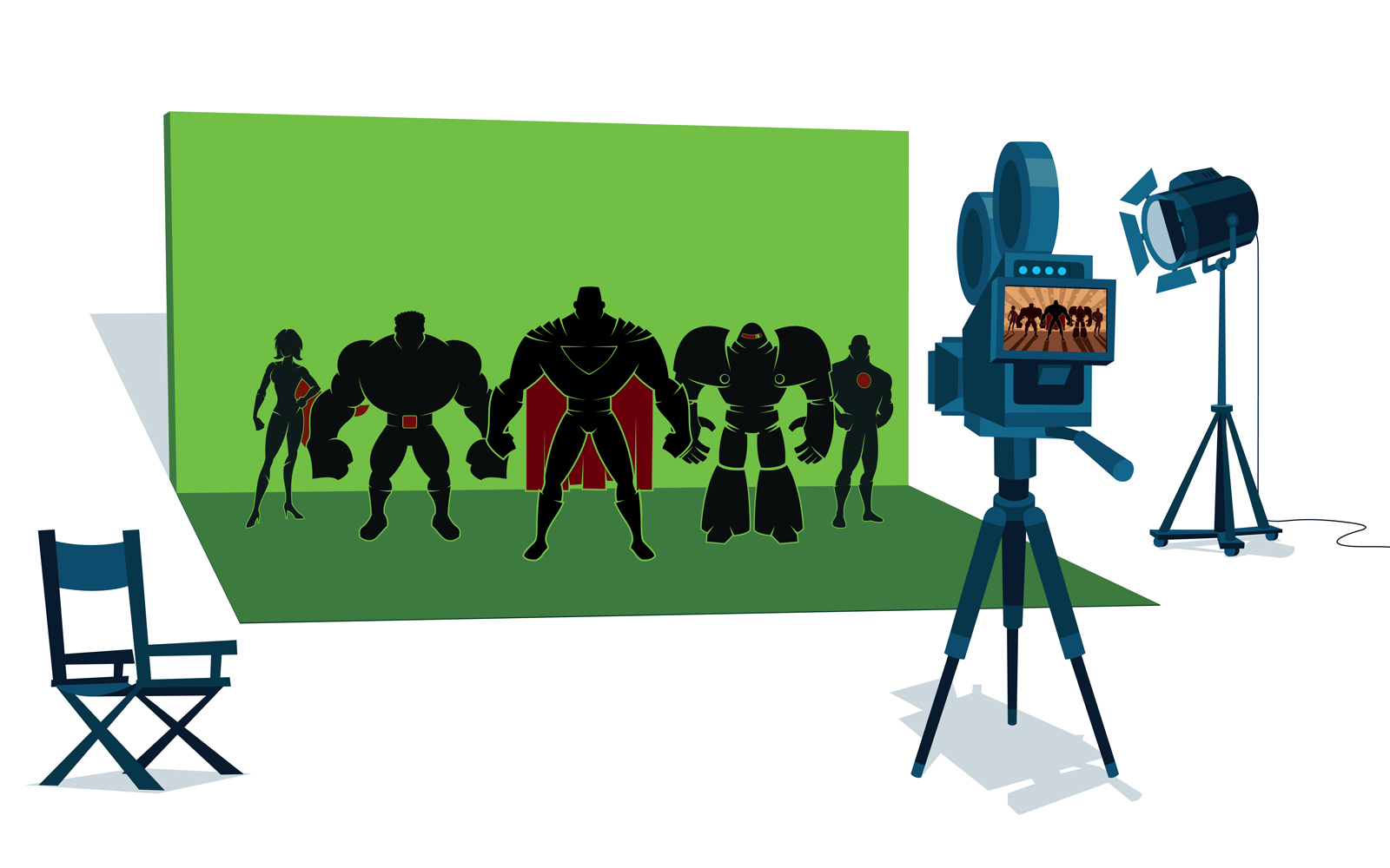 Download Иллюстрация "Superhero Couple Movie Set - Illustration" / Superhero Couple Movie Set - Illustration - Иллюстрация на тему графика studio,movie,film,production,video,set,stage,superhero,super,hero,man,woman,team,couple,family,actor,star,leading,green screen,green