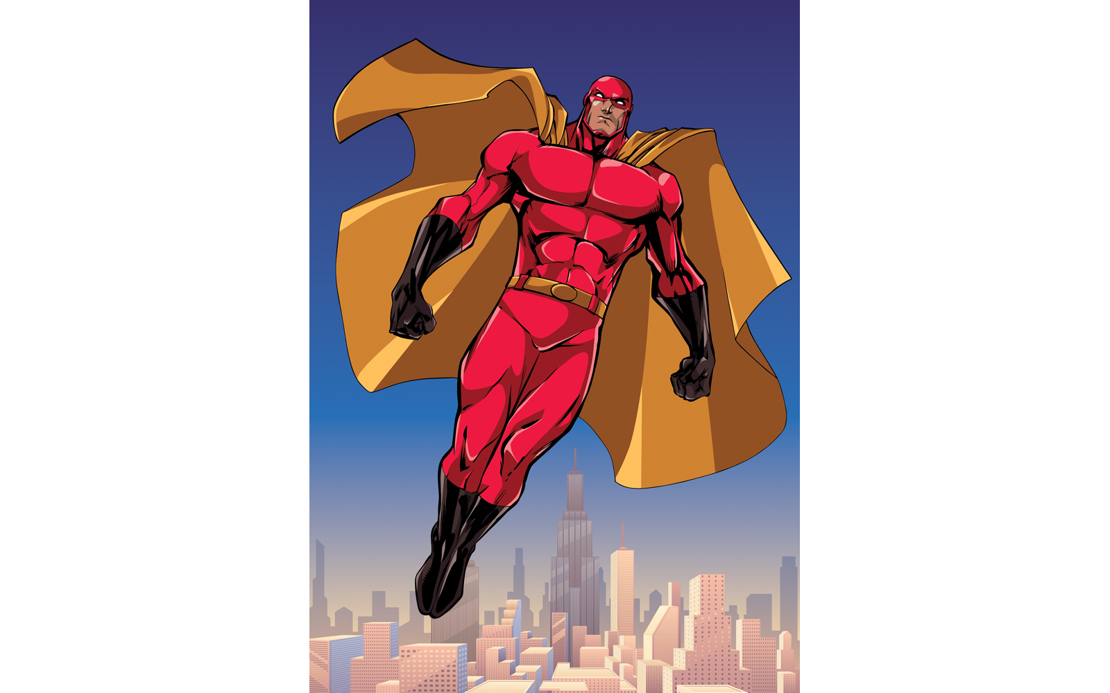 Download Иллюстрация "Superhero Flying Above the City - Illustration" / Superhero Flying Above the City - Illustration - Иллюстрация на тему графика man,cape,hero,superhero,super,flying,soaring,city,cityscape,landscape,powerful,muscles,costume,wearing,disguise,mask,power,energy,character,full length