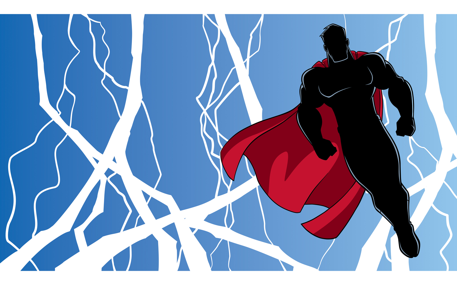 Download Иллюстрация "Superhero Flying During Thunderstorm Silhouette - Illustration" / Superhero Flying During Thunderstorm Silhouette - Illustration - Иллюстрация на тему графика man,cape,hero,superhero,super,flying,soaring,sky,storm,thunder,lightning,thunderstorm,landscape,powerful,muscles,costume,wearing,disguise,silhouette,power