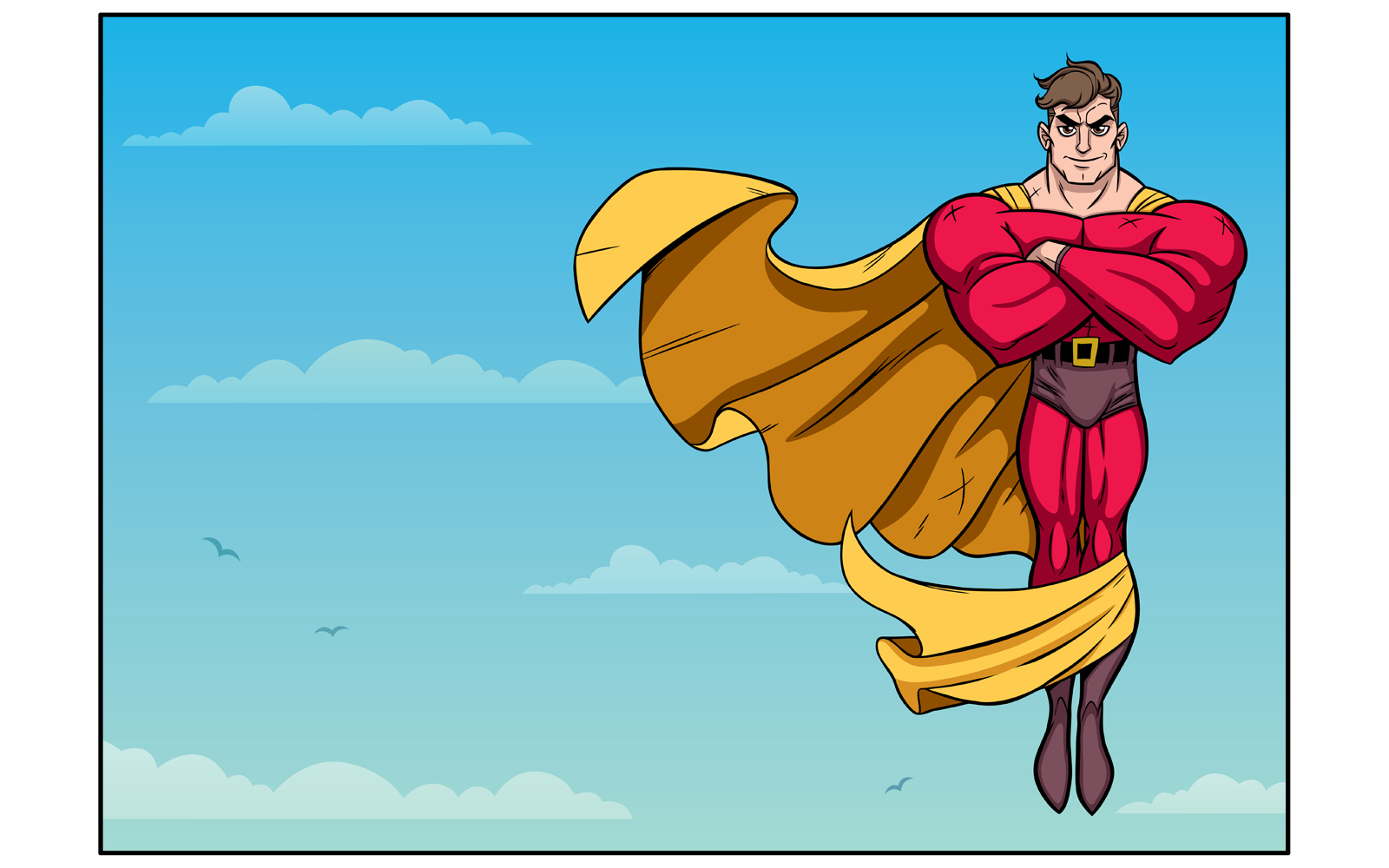 Download Иллюстрация "Superhero Flying in Sky Horizontal - Illustration" / Superhero Flying in Sky Horizontal - Illustration - Иллюстрация на тему графика superhero,super,hero,man,power,flying,floating,sky,cloud,action,figure,comic book,strength,muscular,body,male,macho,costume,disguise,cape