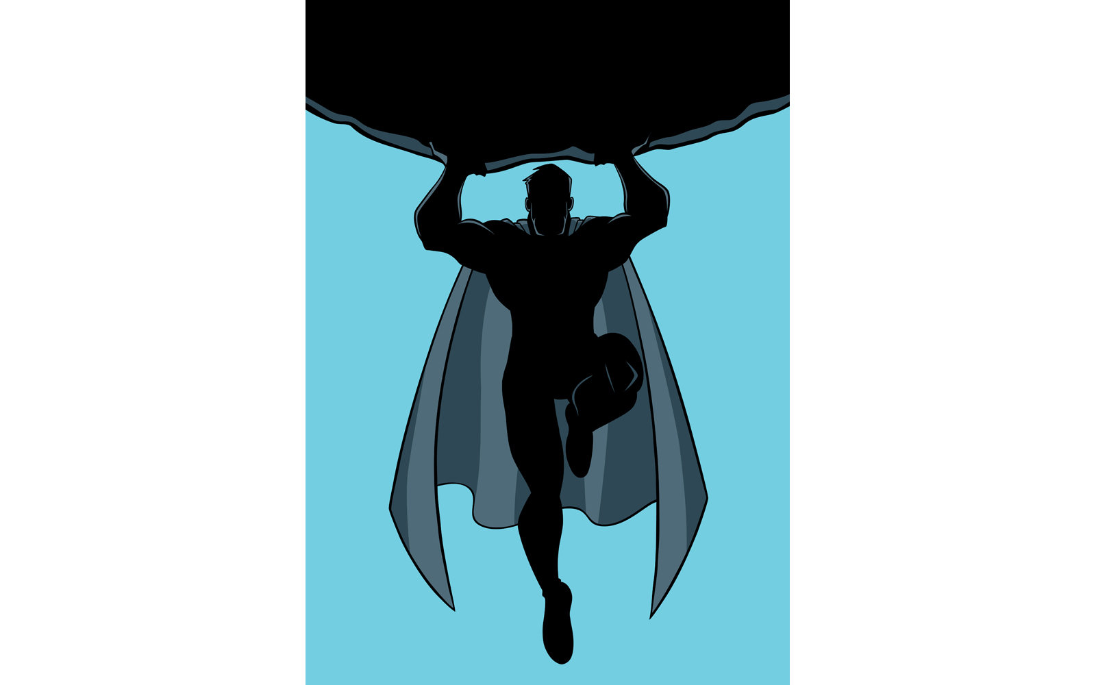 Download Иллюстрация "Superhero Holding Boulder Silhouette - Illustration" / Superhero Holding Boulder Silhouette - Illustration - Иллюстрация на тему графика man,hero,cape,superhero,boulder,power,savior,mission,intervention,powerful,huge,flying,silhouette,sky,big,copy space,muscles,muscular,action,energy