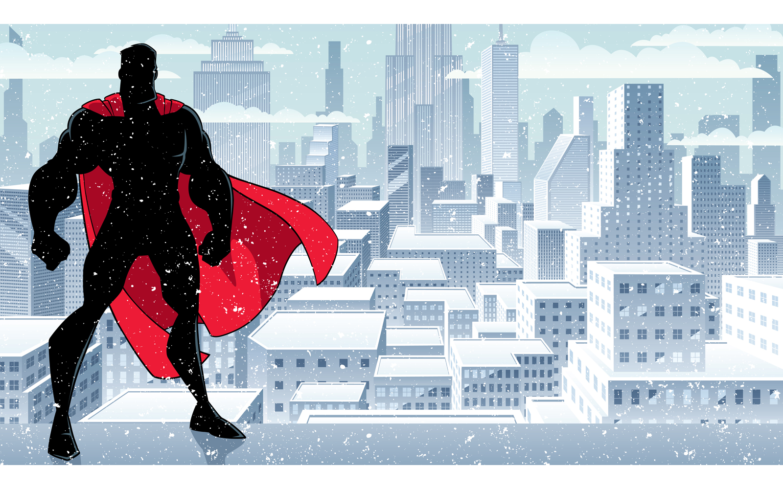 Download Иллюстрация "Superhero Standing Tall Winter Silhouette - Illustration" / Superhero Standing Tall Winter Silhouette - Illustration - Иллюстрация на тему графика superhero,super,hero,man,power,superman,silhouette,comic book,comics,style,strength,strong,standing,tall,muscular,city,cityscape,landscape,background,winter