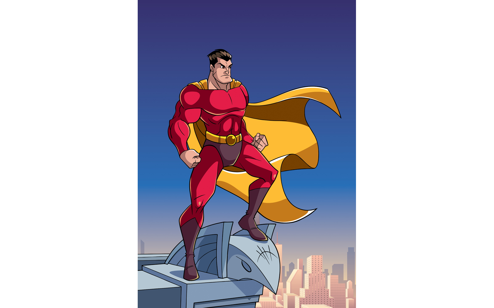 Download Иллюстрация "Superhero Watching City from Roof - Illustration" / Superhero Watching City from Roof - Illustration - Иллюстрация на тему графика superhero,super,hero,man,serious,angry,determined,brave,courageous,city,cityscape,sky,skyscraper,panoramic,view,tower,building,business,office,roof