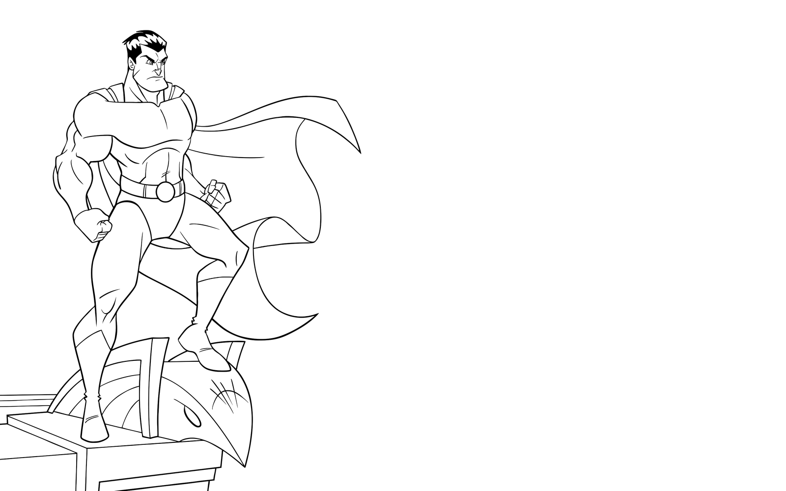 Download Иллюстрация "Superhero Watching From Roof Line Art - Illustration" / Superhero Watching From Roof Line Art - Illustration - Иллюстрация на тему графика super,hero,man,superman,city,skyscraper,tower,building,business,office,roof,background,landscape,coloring,book,line art,comic book,comic,comics,comic strip