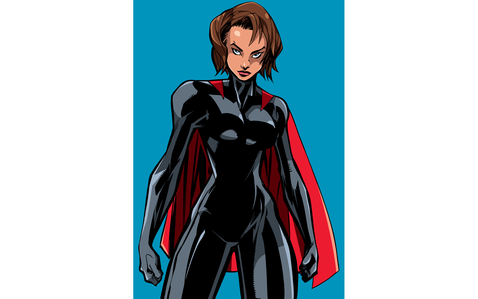 Download Иллюстрация "Superheroine Battle Mode No Mask - Illustration" / Superheroine Battle Mode No Mask - Illustration - Иллюстрация на тему графика woman,girl,female,super,heroine,superhero,superheroine,hero,cape,cartoon,strong,powerful,power,strength,muscular,attractive,sexy,beautiful,independent,standing