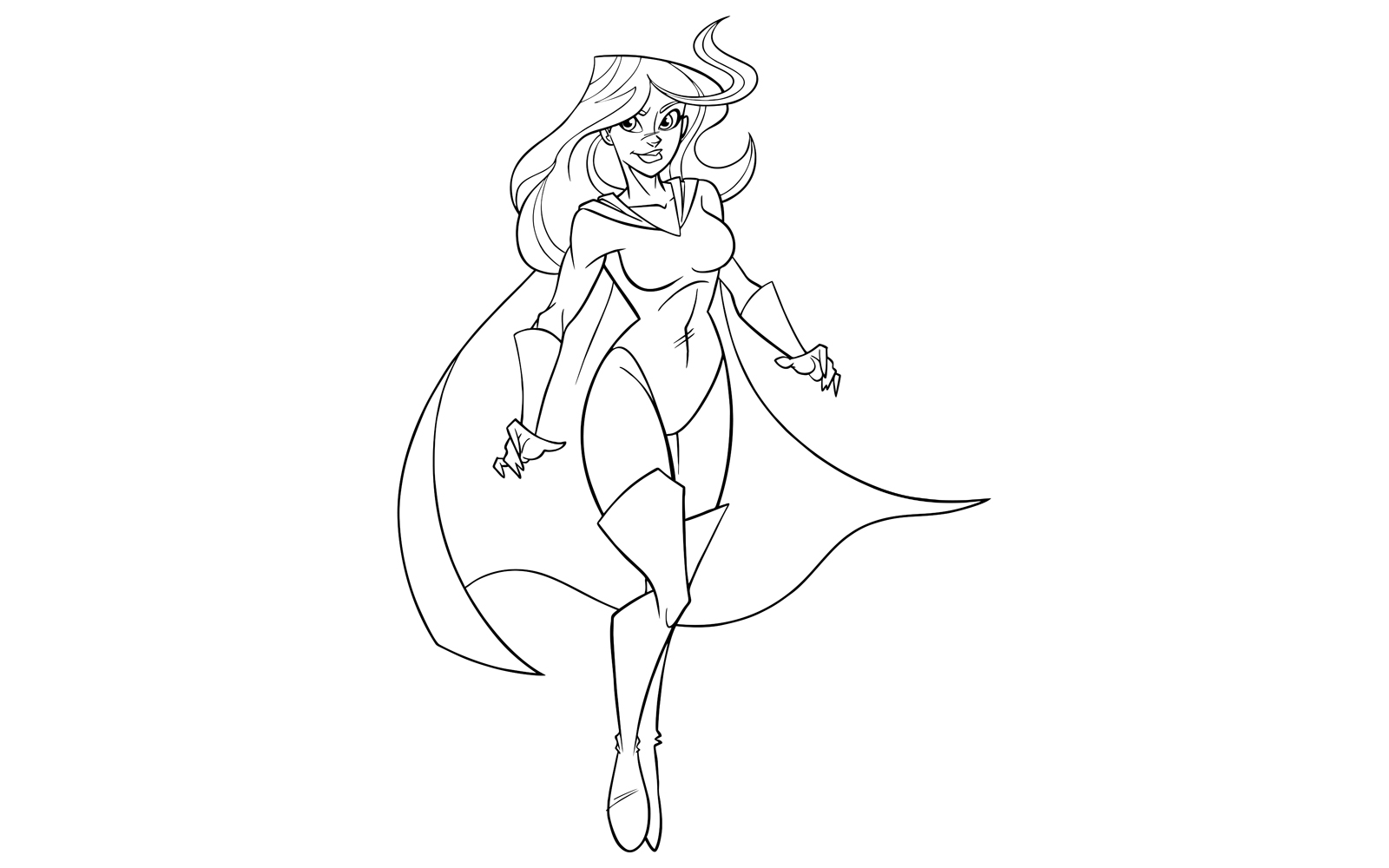 Download Иллюстрация "Superheroine Flying 5 Line Art - Illustration" / Superheroine Flying 5 Line Art - Illustration - Иллюстрация на тему графика woman,cape,superheroine,super,heroine,power,hero,superhero,flying,powerful,energy,illustration,cartoon,character,on white,white background,copy space,full length,comic,comic strip