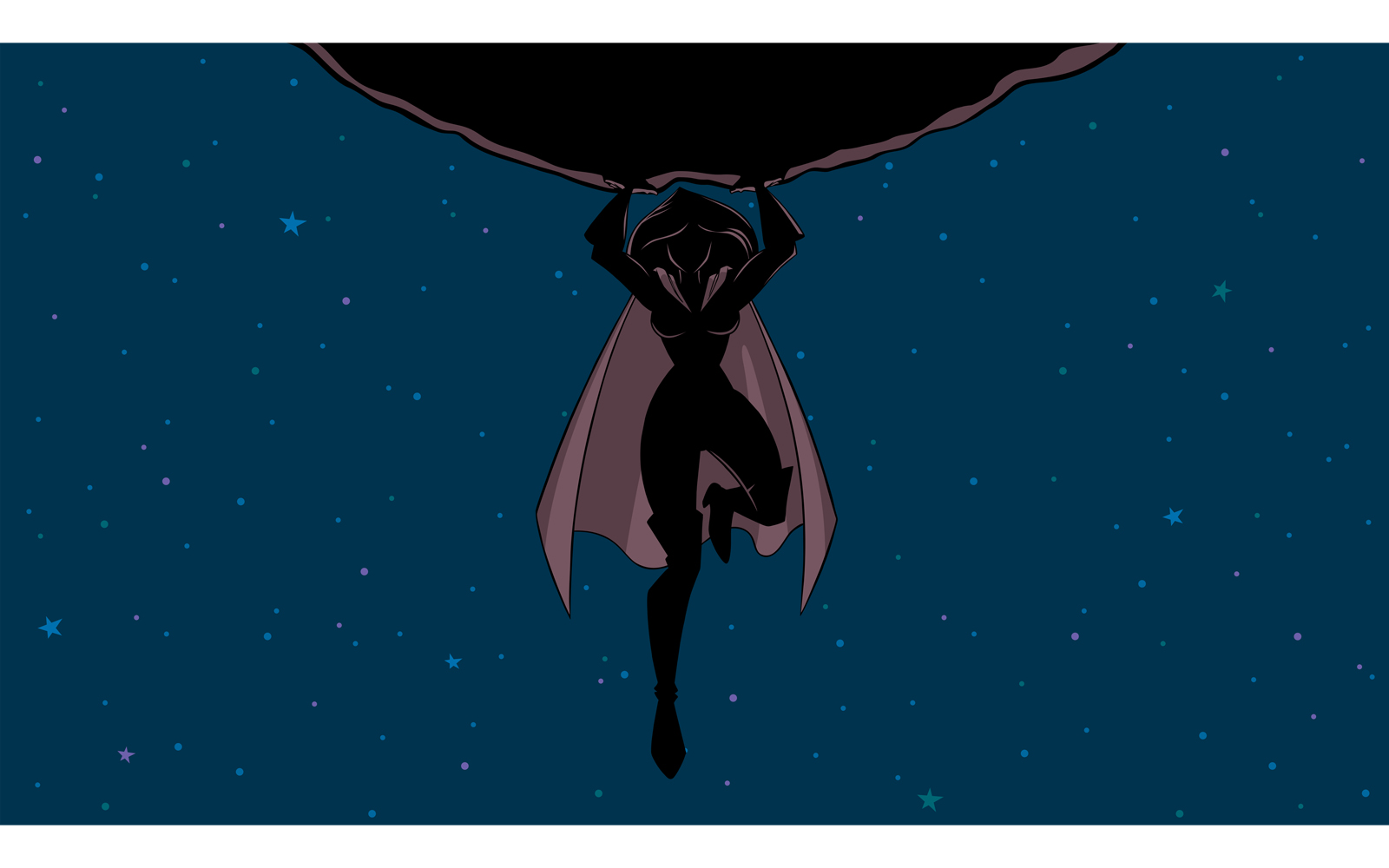 Download Иллюстрация "Superheroine Holding Boulder in Space Silhouette - Illustration" / Superheroine Holding Boulder in Space Silhouette - Illustration - Иллюстрация на тему графика superhero,super,hero,woman,heroine,superheroine,girl,female,silhouette,boulder,rock,stone,meteorite,asteroid,comet,flying,big,space,outer space,power