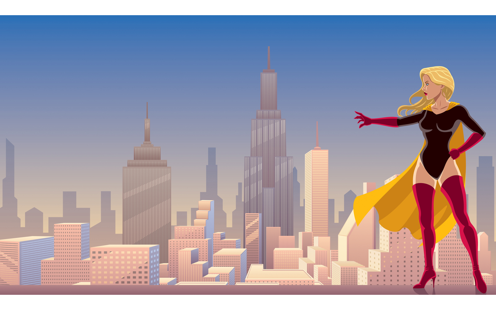 Download Иллюстрация "Superheroine Power in City - Illustration" / Superheroine Power in City - Illustration - Иллюстрация на тему графика superhero,female,superheroine,super,hero,heroine,woman,girl,power,superpower,strength,city,cityscape,skyline,copy space,copyspace,concept,pointing,presenting,reaching