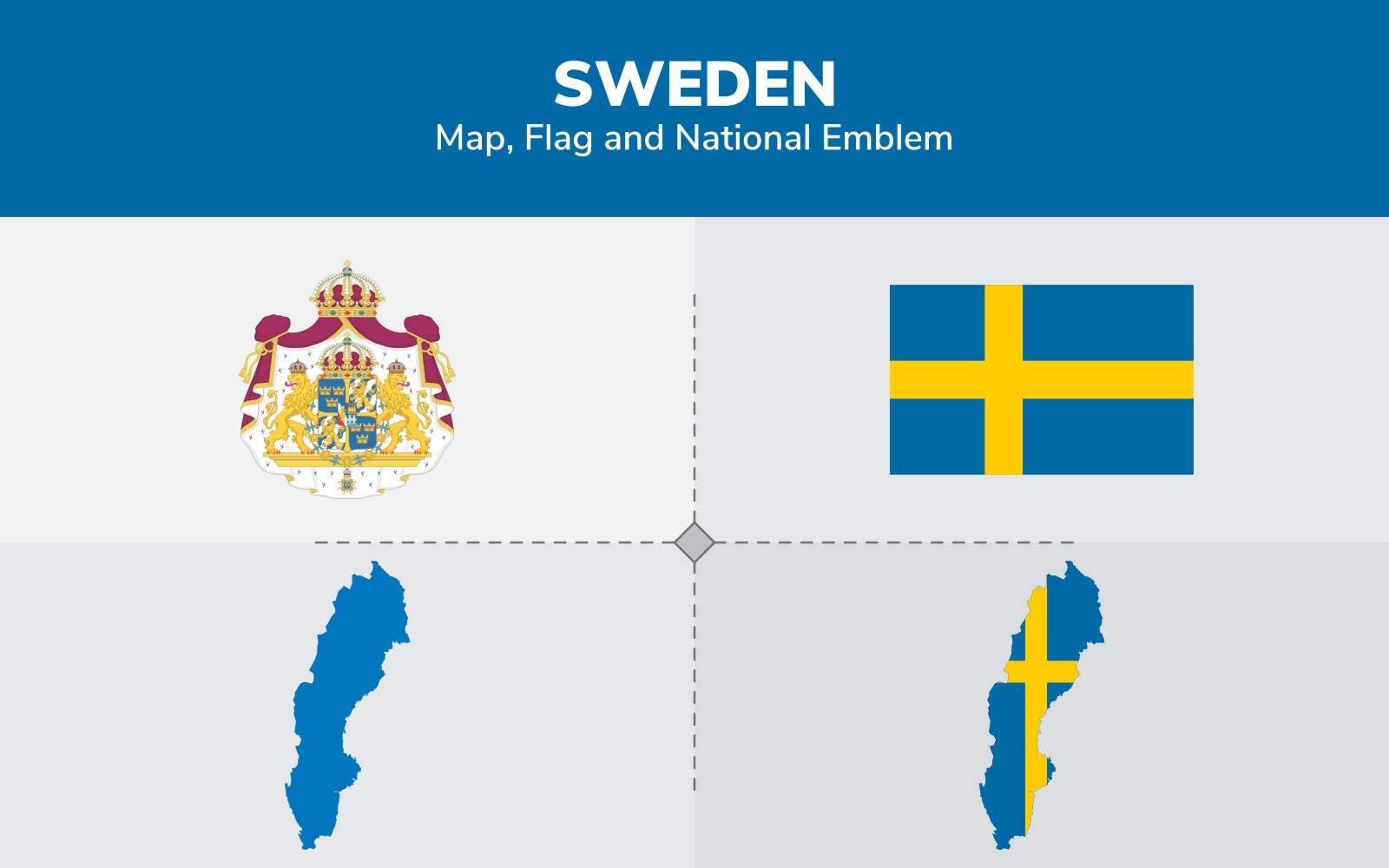 Download Иллюстрация "Sweden Map, Flag and National Emblem - Illustration" / Sweden Map, Flag and National Emblem - Illustration - Иллюстрация на тему графика continents,countries,map,political map,traveling,vector,emblem,national,flag,coat,arms,country,symbol,nations,state,sign,nation,badge,symbolic object,europe