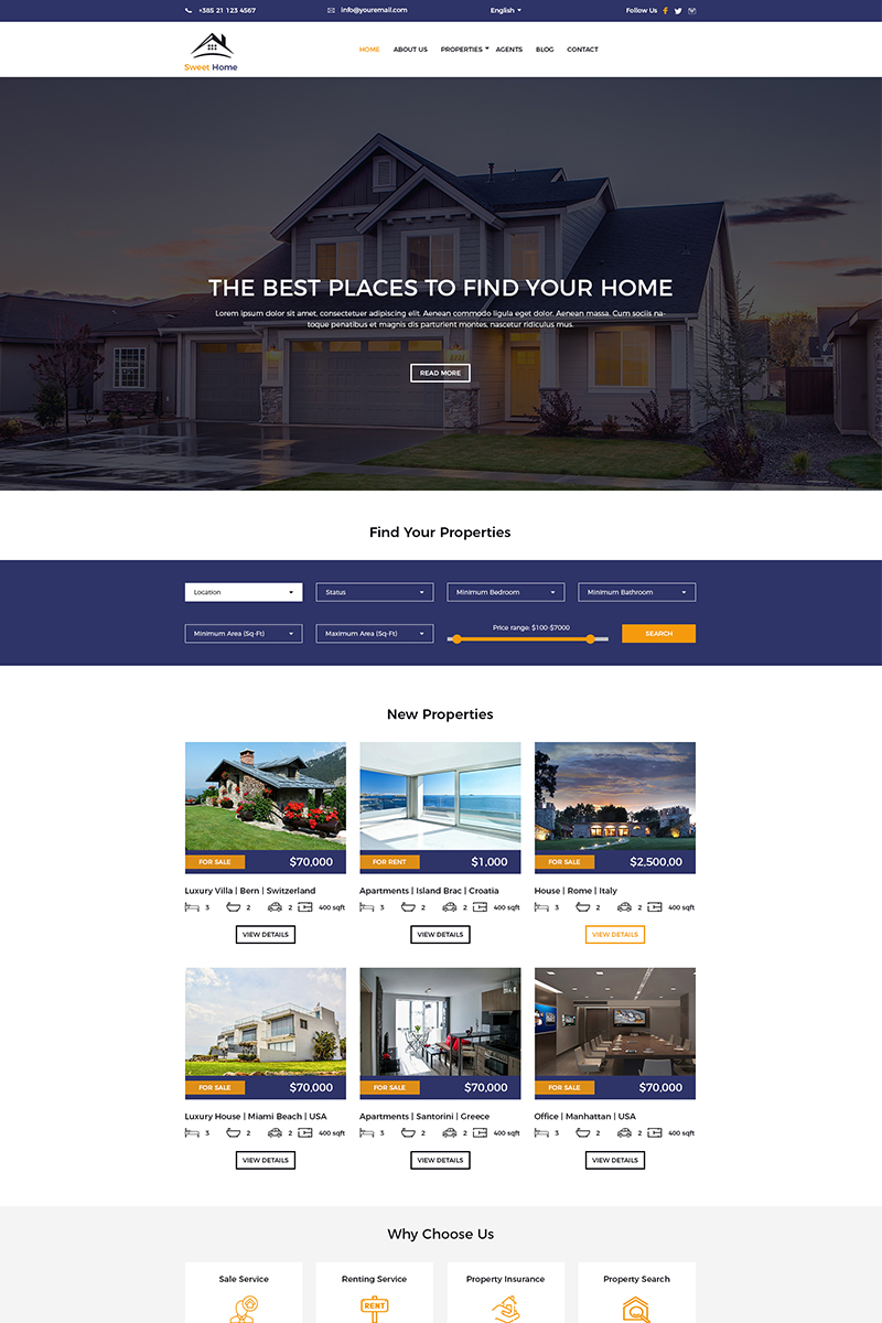 Download PSD шаблон "Sweet Home Real Estate PSD Template" / Sweet Home Real Estate PSD Template - PSD шаблон на тему агентство недвижимости home house residence realestate realestatepsd properties realestatetheme