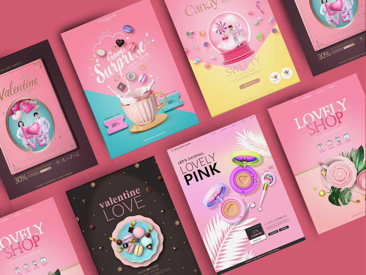 Download Фирменный стиль "Sweet Pink Flyer - Corporate Identity Template" / Sweet Pink Flyer - Corporate Identity Template - Фирменный стиль на тему графика valentine,business,flyer,newsletter,pink,sweet,design,graphic,photoshop,dessert,poster,brochure