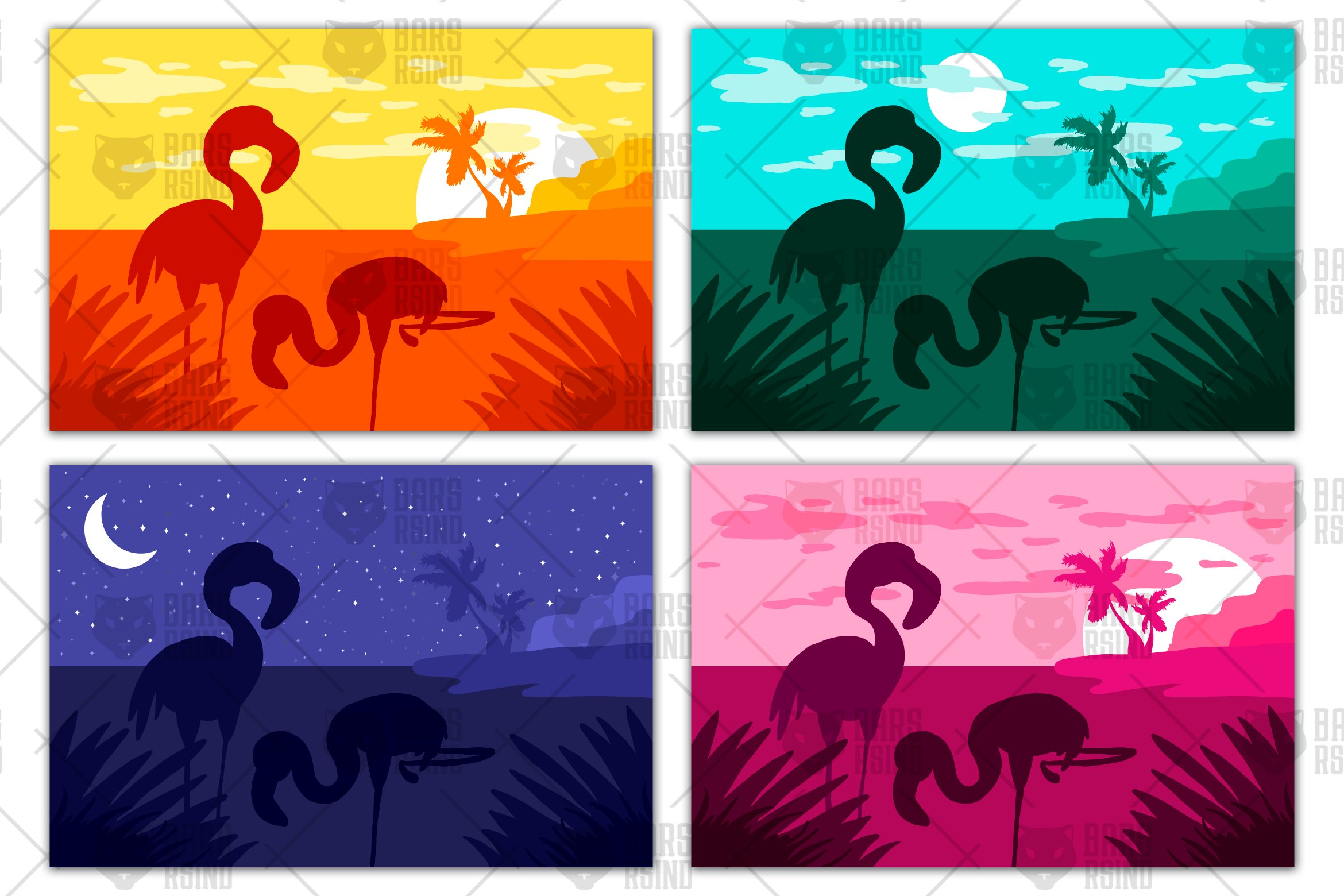 Download Vector "Swimming Flamingo On Tropical Island - Vector Image" / Swimming Flamingo On Tropical Island - Vector Image - Vector на тему графика illustration,nature,summer,vector,beach,tropical,island,sun,palm,sunset,sunrise,travel,tree,pink,cloud,background,vacation,outdoor,sea,silhouette,landscape,ocean,scene,plant,animal,exotic,flo