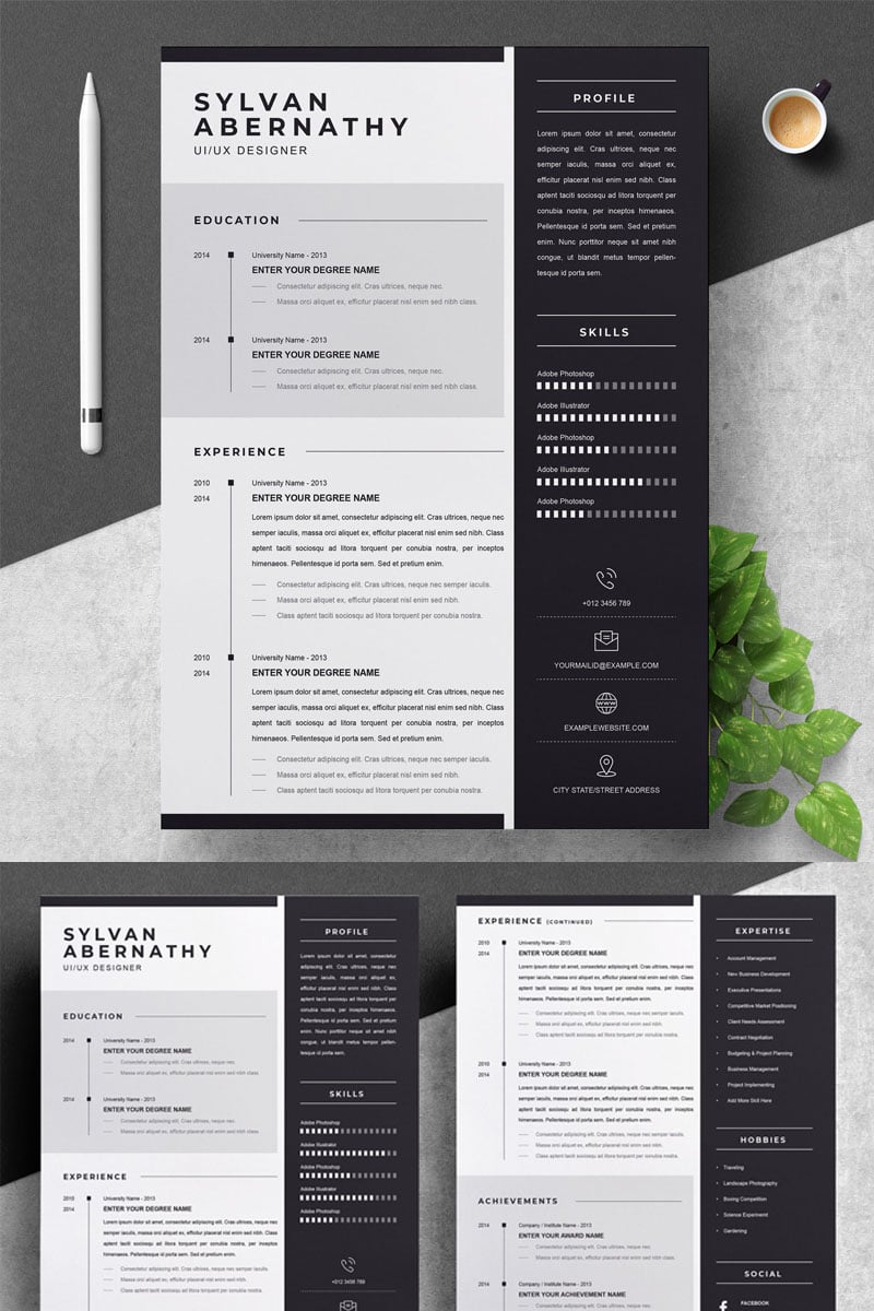 Download Резюме "Sylvan Resume Template" / Sylvan Resume Template - Резюме на тему графика 1 page resume 2 clean cv cover letter design template illustrator eps mac pages microsoft word modern photoshop psd professional