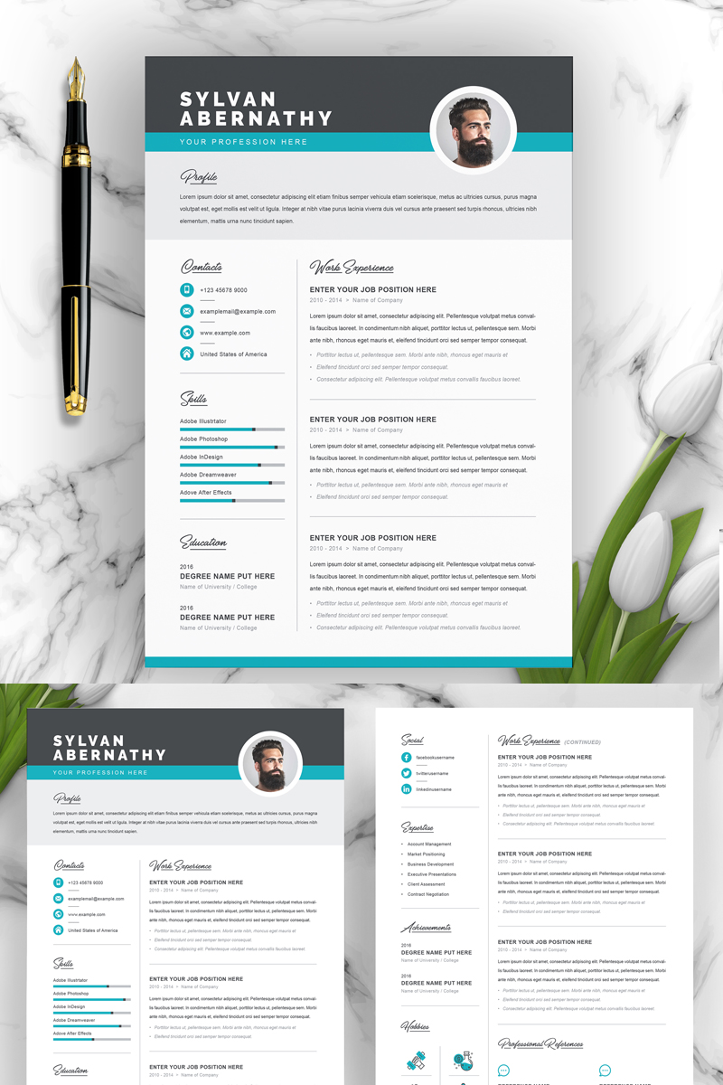 Download Резюме "Sylvan Resume Template" / Sylvan Resume Template - Резюме на тему графика 1 page resume 2 clean cv cover letter design template illustrator eps mac pages microsoft word modern photoshop psd professional