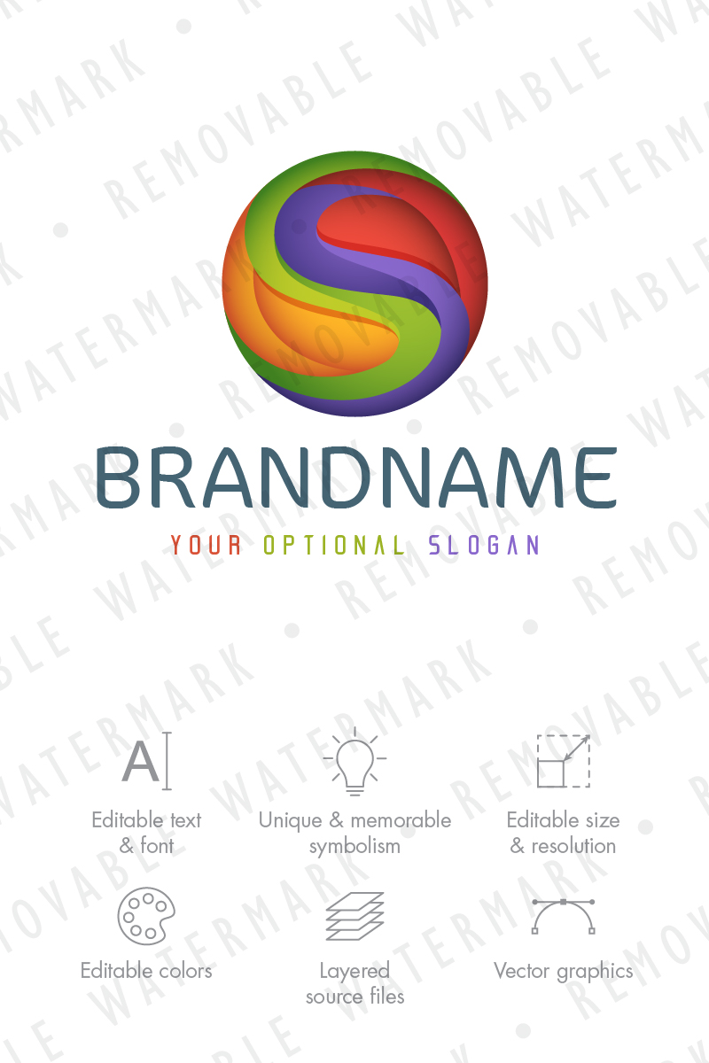 Download Шаблон логотипа "Synergy of Colors Logo Template" / Synergy of Colors Logo Template - Шаблон логотипа на тему графика abstract colorful color paint technology sphere blend synergy mix spectrum s art creative yin yang balance harmony logo design template