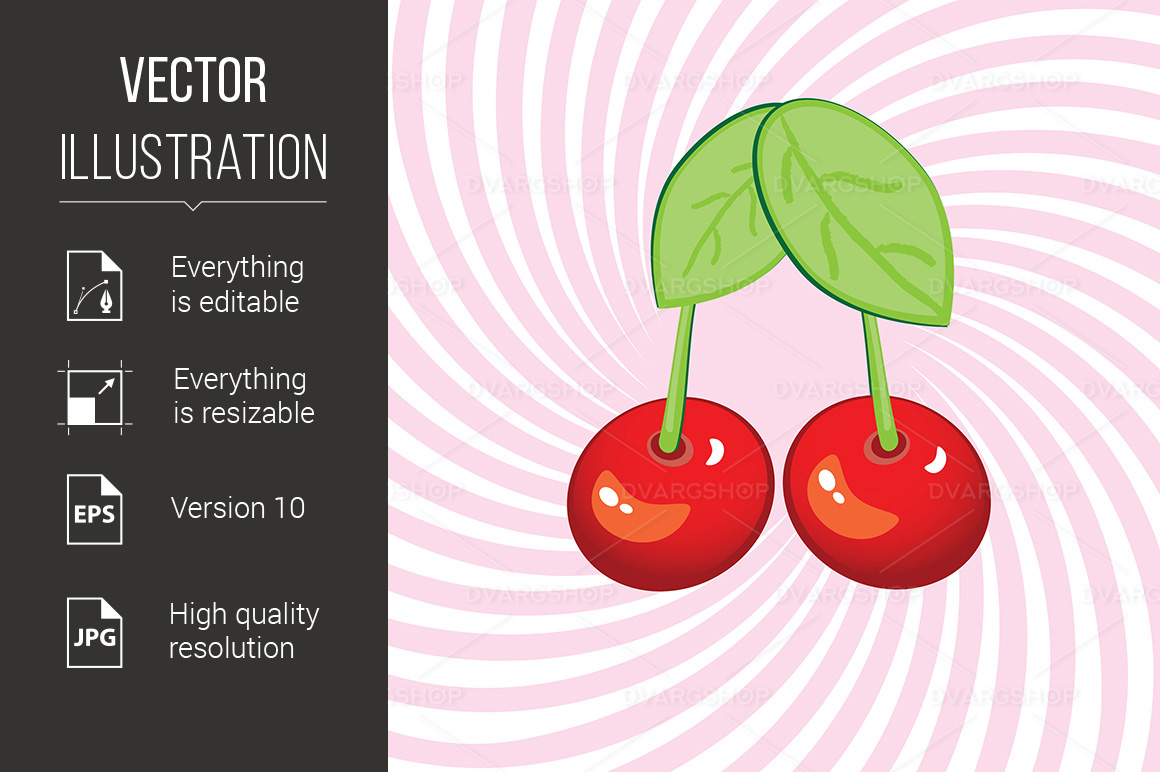 Download Vector "Tasty Cherries - Vector Image" / Tasty Cherries - Vector Image - Vector на тему графика tasty,cherries,pink,white,bright,studio,elegance,plant,macro,design,closeup,juicy,diet,love,object,natural,art,healthy,stem,juice