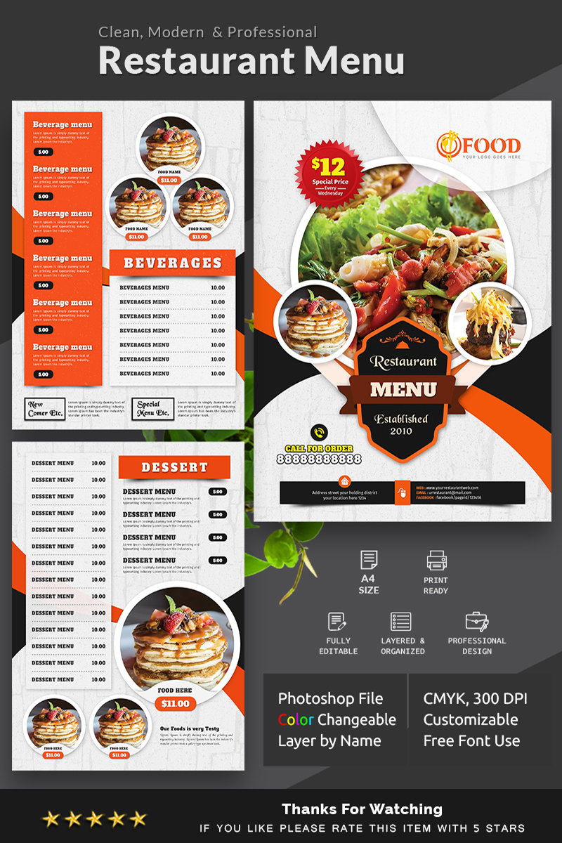 Download Фирменный стиль "Tasty Restaurant Menu - Corporate Identity Template" / Tasty Restaurant Menu - Corporate Identity Template - Фирменный стиль на тему графика a4 menu all purpose beautiful brown cafe cafeteria club minimalist pasta pizza poster price restaurant retro rice rustic food